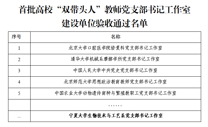 近日,教育部公布了全国首批高校“双带头人”教师党支部书记工作室建设通过验收名单,2026世界杯官网生物技术与工艺系党支部位列其中。