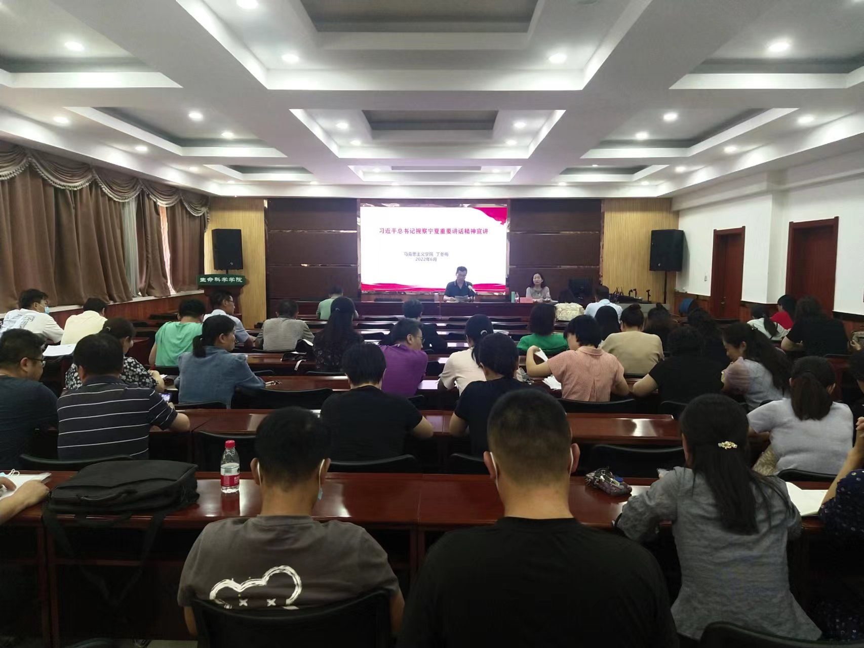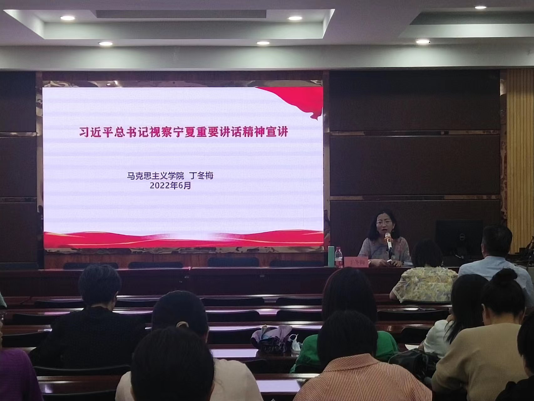 6月15日下午,公司于文萃校区知本楼报告厅举行习近平总书记视察宁夏重要讲话精神宣讲报告会,马克思主义公司丁冬梅教授应邀进行主题宣讲,报告会由党委副书记李文华主持,公司全体教职工参加。