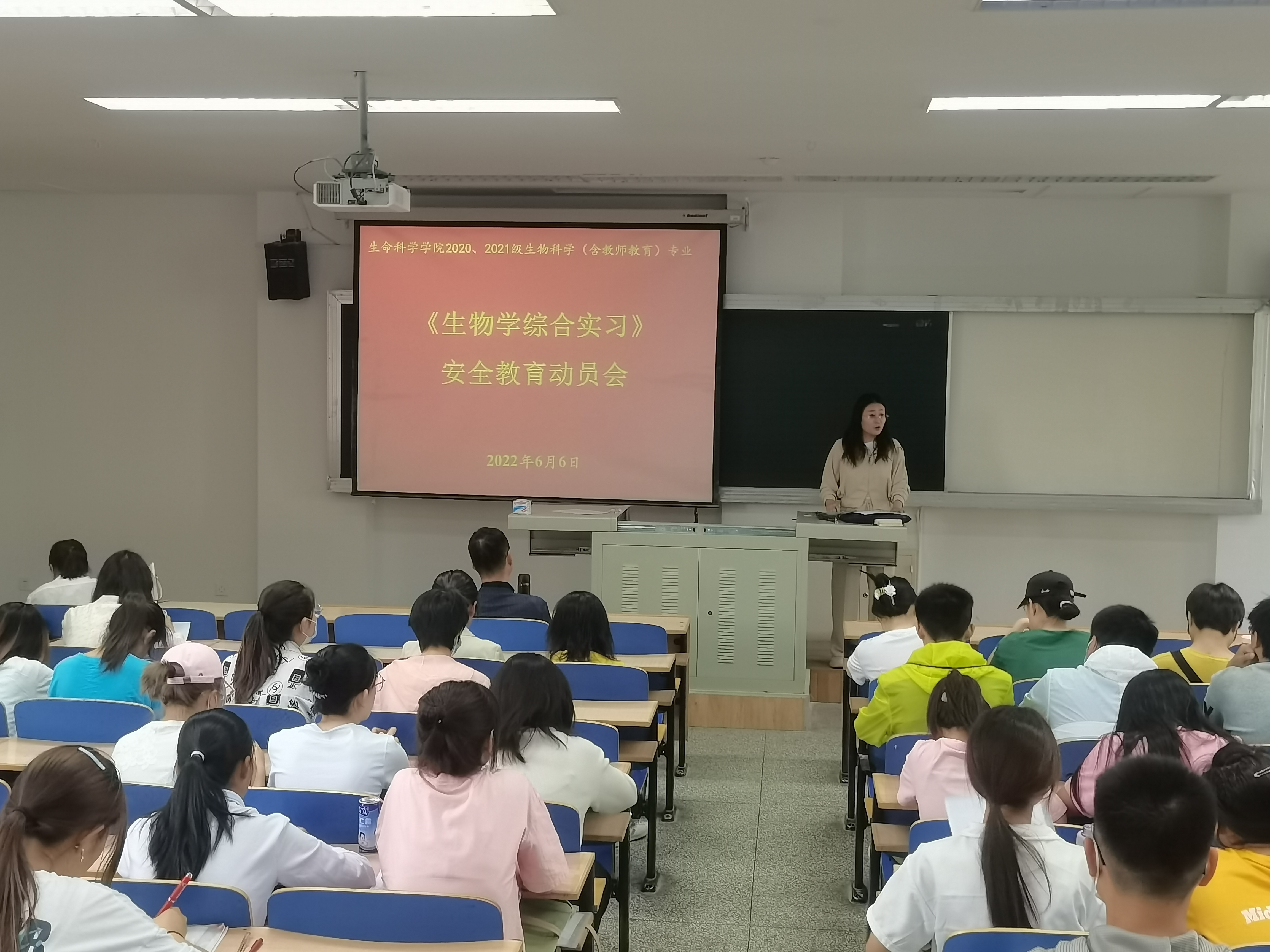6月6日上午,2026世界杯官网生物学综合实习安全教育动员会议在文萃一教422教室召开,参与本次实习的指导教师、员工共计86人参加了会议,公司党委副书记李文华、副经理李乐出席会议,会议由植物学与生态学系主任郑国琦主持。