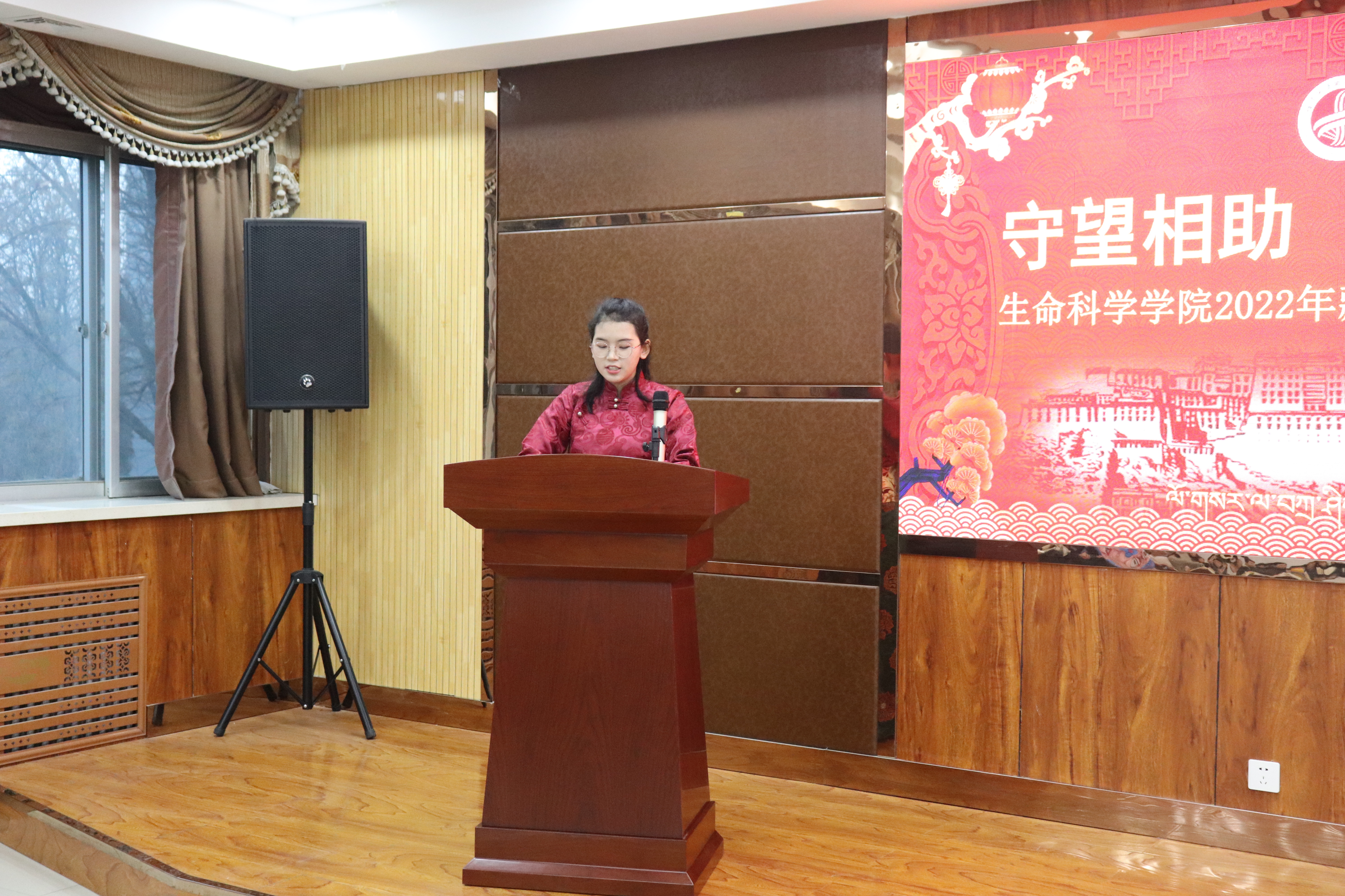 晚会在具有高原特色的藏族敬酒歌、敬献哈达中拉开帷幕,热烈的气氛、精彩的表演,迅速点燃了同学们的热情。联欢会上藏族同学们邀请在场师生做糌粑、品尝藏族特色美食、跳锅庄舞......曼妙的舞姿,优雅的歌曲展现出“年味、乡土味、文化味”,唱响新时代对美好生活的赞歌。