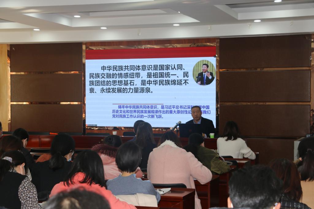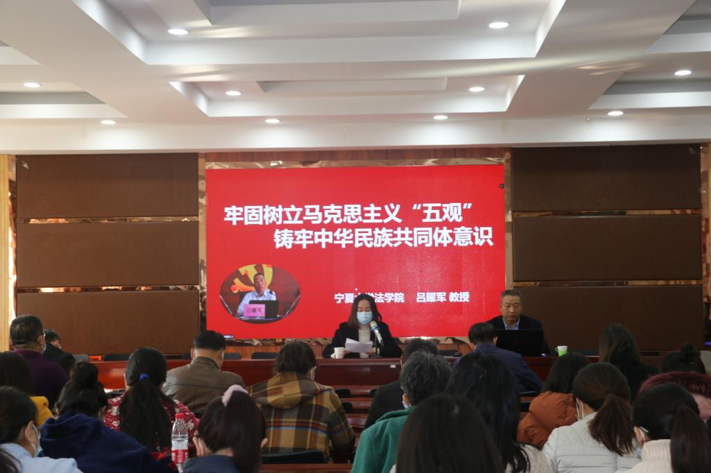 吕耀军教授围绕“铸牢中华民族共同体意识的深刻内涵”、“铸牢中华民族共同体意识的理论途径”、“铸牢中华民族共同体意识的宁夏实践”三个方面讲述了民族团结教育的必要性、迫切性以及现实意义,从理论层面提出了铸牢中华民族共同体意识的路径方法,介绍了宁夏促进民族团结生命线的实践经验。