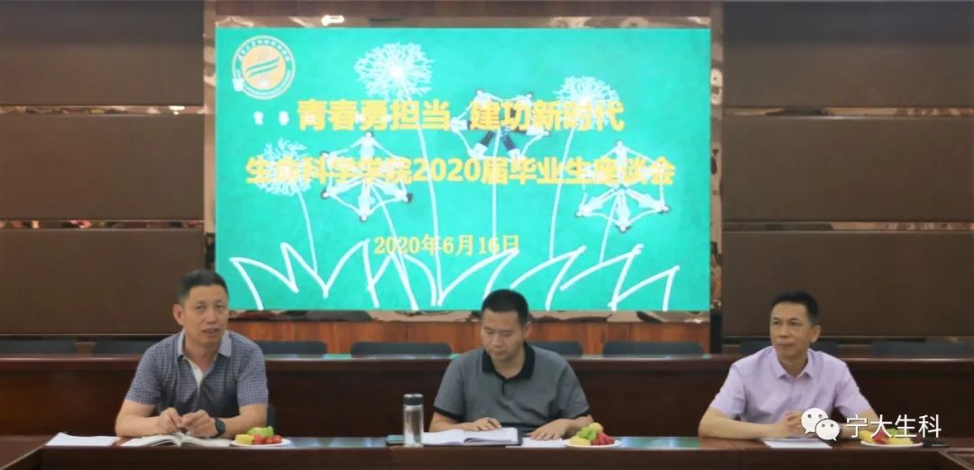 座谈会上王彦庚对2020届毕业生提出殷切希望与要求:要主动吃苦,选择了吃苦才能有收获;要有目标,找准人生的方向;要不断加强学习力,找到解决问题的路径方法;要练就过硬本领,不断磨练自己;要不断创新,积极思考;要做奋斗者,奋斗的青春最美丽;要做有担当的人,不负时代赋予我们的使命和重托。