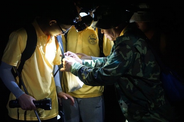 “两爬”组晚上在观察蛙