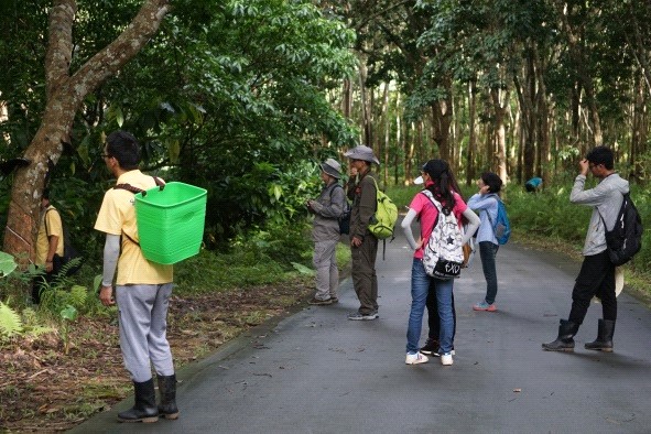15日开始就分不同的课题小组活动了。员工被分成8个小组:分别是勐仑地区两栖爬行类动物多样性调查、热带植物特有生态学性调查、西双版纳勐仑地区昆虫多样性调查、西双版纳植物园及巴卡小寨大型真菌多样性调查、勐仑植物园雀形目小型鸟类的行为观察、勐仑地区底栖动物资源调查、古茶山生境及其茶叶品质特点探秘。宁夏老员工命科学公司员工分别参加了西双版纳勐仑地区昆虫多样性调查、西双版纳植物园及巴卡小寨大型真菌多样性调查、及古茶山生境及其茶叶品质特点探秘四个小组的实习活动。同学们的工作很辛苦,也非常的有意义。“观鸟组”同学一大早6点钟就进园子了,坐在那里一动也不动用望远镜观察,记录一种采食花蜜的小鸟;“昆虫组”及“两爬组”则是要到晚上十一、二点、观察昆虫传粉的同学则是在中午最热的一、二点钟;“真菌组”同学则要去那些湿漉漉的林下寻找各种各样的蘑菇,晚上还要在解剖镜和显微镜下观察记录;“茶组”同学每天坐车去各个茶园进行探秘。大家很充实的过着每一天,也非常珍惜这样的实习机会。云南大学的指导老师每天和实习同学共同作息,对同学们的工作进行各方面的指导。