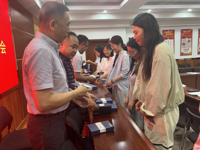 会议伊始领导老师们向毕业生赠送毕业礼物,表达对他们未来的美好祝愿。并鼓励毕业生们要敢于创新、敢于拼搏,不断追求自己的梦想和目标,勇敢面对未来的挑战和机遇。苏建宇从多角度与毕业生们分享成长成才历程,鼓励他们要持续学习、积极实践、常回母校。张强寄语毕业生们要满怀激情地面对未来,始终坚持梦想,保持良好心态,不断成长和进步,开启自己幸福的人生。邓光存从就业角度鼓励毕业生们要保持谦逊敬业的态度,将个人的职业规划与长远的生涯规划紧密结合,确保前行之路稳健而明智。