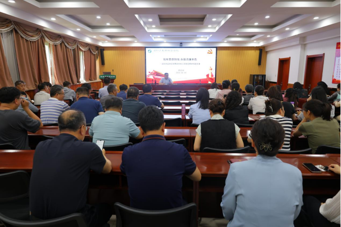 会议伊始,邓光存以“筑牢思想防线 永葆清廉本色”为题,为全体参会人员讲授专题党课。党课中,邓光存从全体党员教师要深刻认识中央八项规定精神的内涵与重大意义、高校领域违反中央八项规定精神典型案例剖析、不折不扣贯彻落实中央八项规定精神的部署与纪律、躬身践行,作遵规守纪、清正廉洁的表率四个方面进行了深入讲述,强调要严格执行各项规章制度,坚决杜绝铺张浪费和违规违纪行为,营造风清气正的校园政治生态。