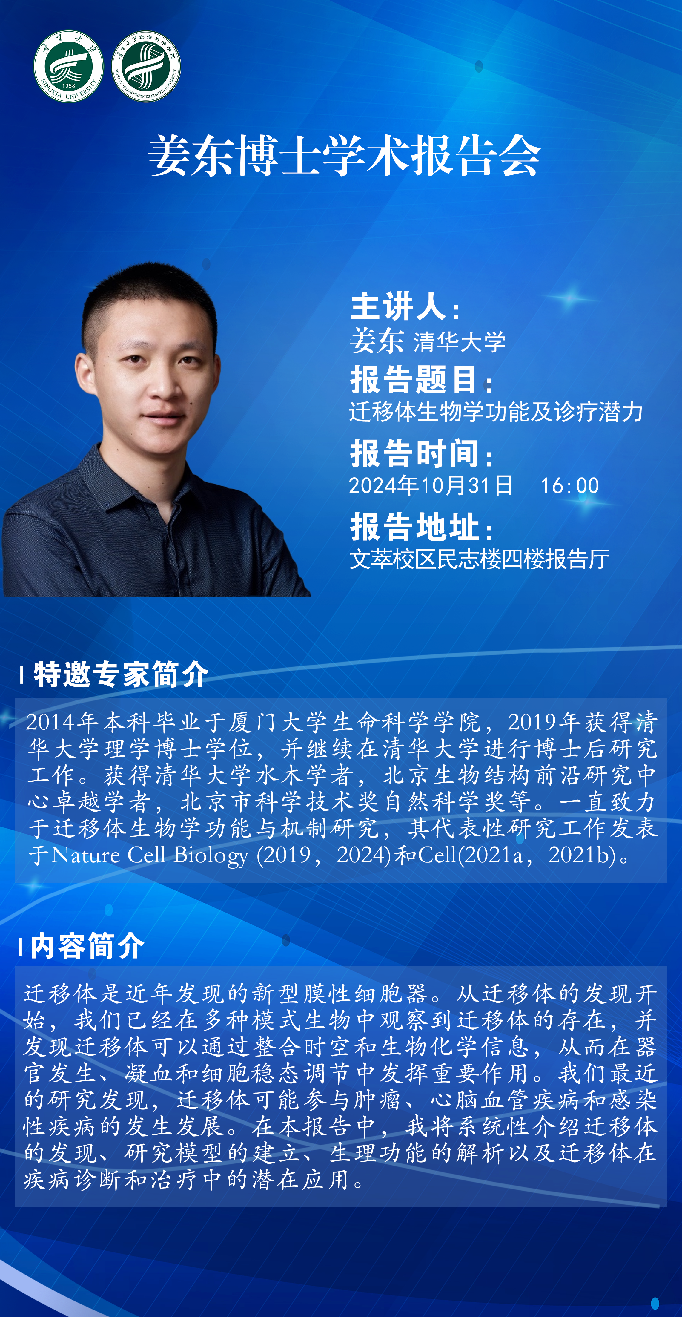 讲座题目:迁移体生物学功能及诊疗潜力