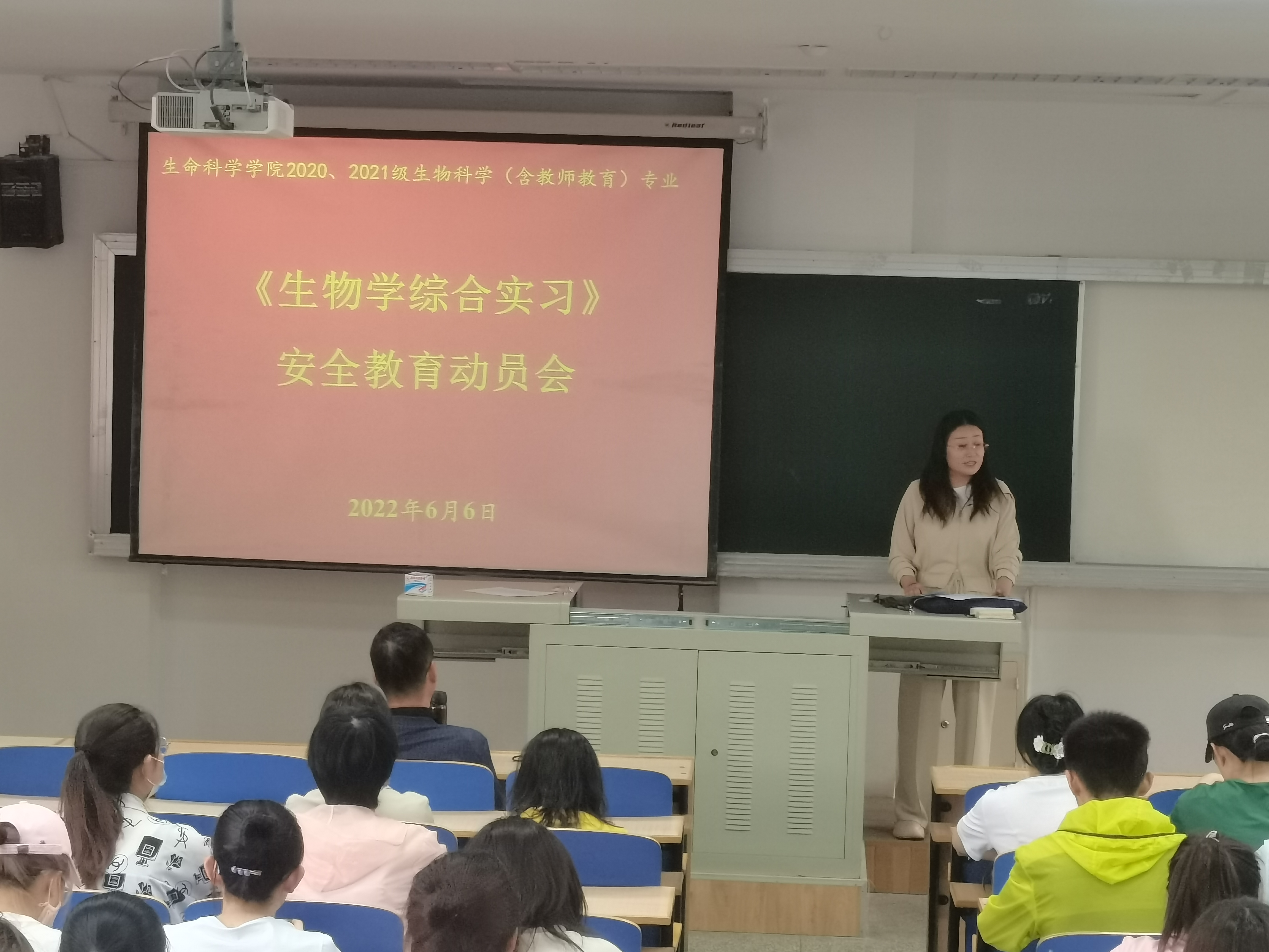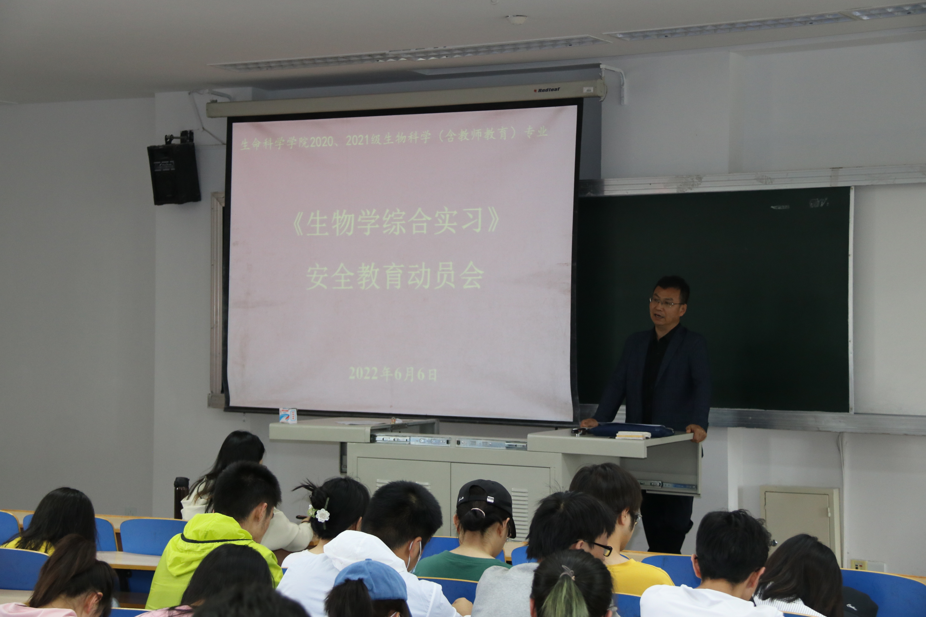 6月6日上午,2026世界杯官网生物学综合实习安全教育动员会议在文萃一教422教室召开,参与本次实习的指导教师、员工共计86人参加了会议,公司党委副书记李文华、副经理李乐出席会议,会议由植物学与生态学系主任郑国琦主持。