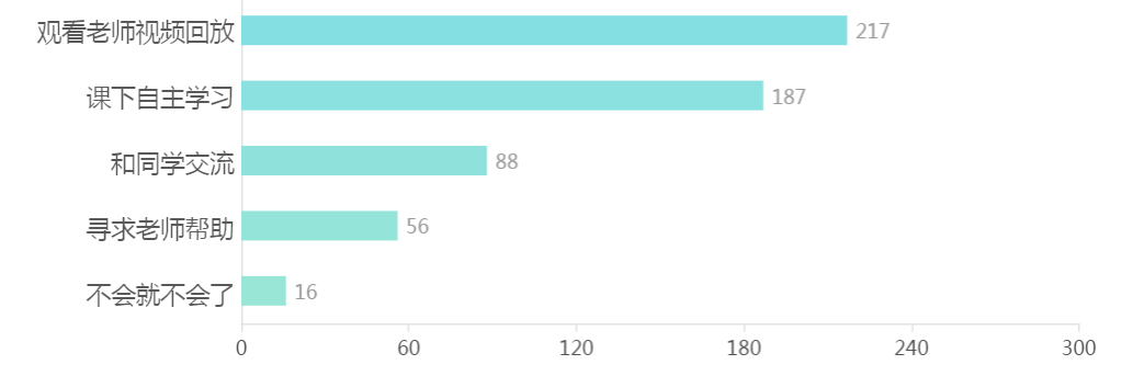 3.对于未掌握的学习内容,员工通常采取的学习方式是:观看老师录制视频217人次,课下自主学习187人次,与同学交流及寻求老师帮助分别为88人次和56人次。