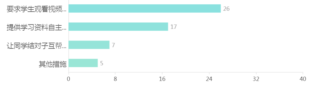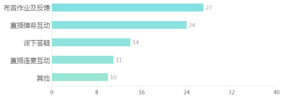 大部分教师能够维持良好的在线课堂秩序,利用各类在线学习资源,组织员工签到,通过线上教学作业设计和线上讨论等多种方式引导员工积极参与线上教学;提前布置员工自学任务,及时布置作业及思考题,进行线上辅导与答疑。