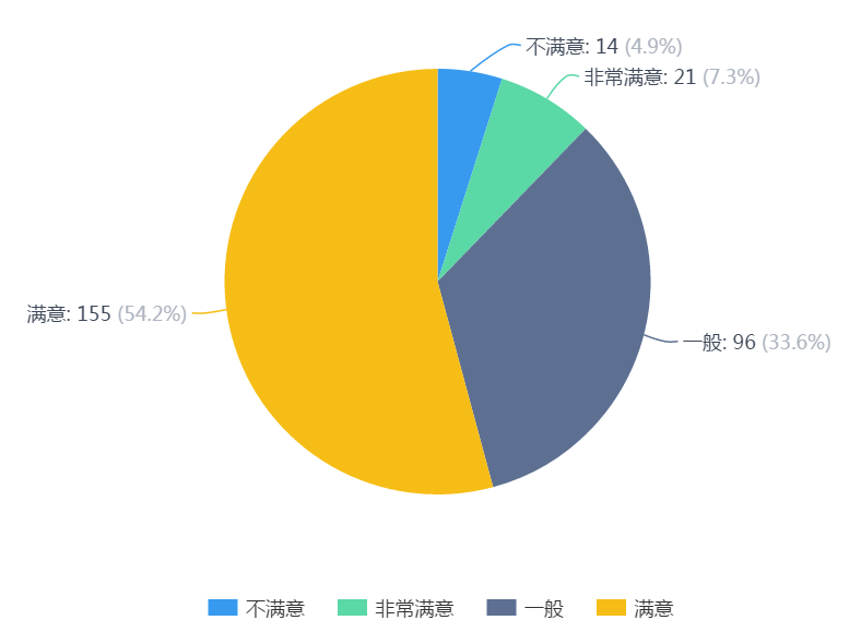 7.员工对自己的满意度分析:非常满意占7.3%,满意占54.2%,一般占33.6%,不满意占4.9%。