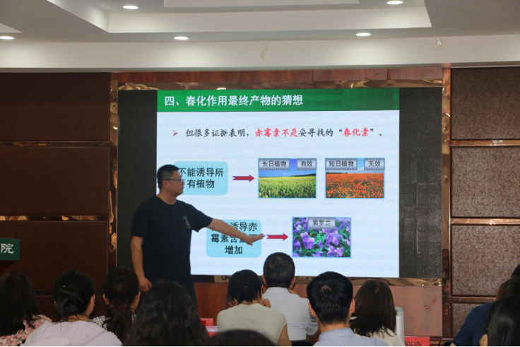 会后,第三届青教赛全国一等奖获得者、农公司王彬教授结合自身参赛经历围绕选定课程节段、教学设计、教学反思、比赛心态等方面为全体教职工做经验分享,并就植物春化作用进行教学示范。大家一致认为,王彬教授的示范课情绪饱满,巧妙运用启发式、案例式教学方法,从课程的导入到课程思政的自然融入,都表现出极高的教师素质。公司将以本次青教赛为契机,持续加强教师队伍建设,营造尊师重教的良好环境,振奋精神、团结进取,不断提升教学水平,为培养德智体美劳全面发展的社会主义建设者和接班人贡献力量。