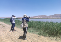 在青铜峡库区湿地保护建设管理局自然保护科曹学东科长的带领下,师生们首先进入保护区实地进行了湿地动物种类的识别与采集工作。实习指导教师结合观察到的保护区生境特点、鸟类及其他动植物种类,向同学们详尽介绍了保护区的鸟类多样性、动植物与环境的关系,将理论与实践相结合,以浅显易懂的方式引导员工们巩固课堂所学的动物学知识。