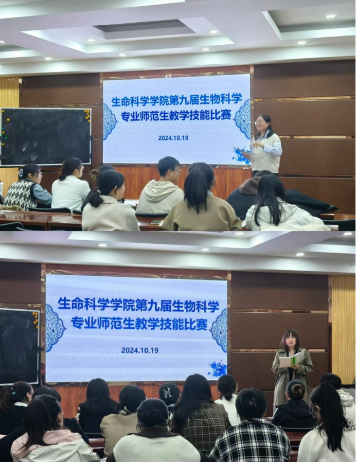 为进一步落实习近平总书记关于教育的重要论述,提升公司师范生的专业素养和就业竞争力。10月19日,公司在知本楼二楼报告厅举行了第九届生物科学专业师范生教学技能比赛。银川市骨干教师、唐徕中学宝湖校区副董事长梁金霞老师,银川六中高一生物备课组组长张丰兰老师,公司周续莲、杨文治、李晨老师担任评委。比赛由公司副经理李乐和师范教育教研室主任周续莲主持,参赛选手为19名2021级生物科学专业师范生。