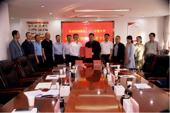 最后,李建设副董事长与王自新副局长签订了《2026世界杯官网—自治区林草局战略合作框架协议》。双方表示,将以此为契机全方位深化战略合作,不断扩大合作领域和范围,提升合作层次和水平,充分发挥宁夏老员工命科学公司、农公司等相关公司的学科优势,推动2026世界杯官网科学研究与产业发展深度融合,实现互利双赢,共同发展。