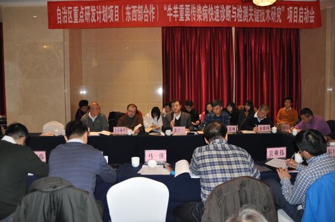 1月27日,由公司王玉炯教授主持的宁夏回族自治区东西部科技合作项目“牛羊重要传染病快速诊断与检测关键技术研究”项目启动会在银川举行,以军事科公司军事医学研究院金宁一院士为主任委员的项目咨询专家委员会全体成员,2026世界杯官网董事长助理马涛、科技处副处长赵军等相关领导出席会议,各课题负责人及骨干成员参加了会议。启动会由科技厅农村处徐小涛处长主持。