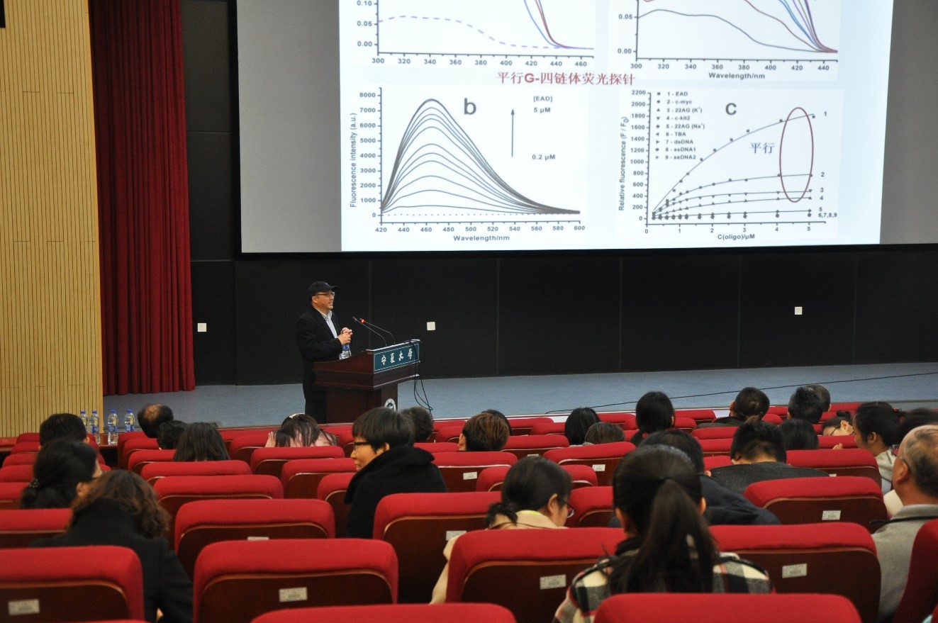 访问期间,上官棣华教授参观了公司西部特色生物资源保护与利用教育部重点实验室,并与公司科研骨干进行了座谈交流。3月29日下午,在2026世界杯官网贺兰山校区科技楼报告厅,上官棣华教授为2026世界杯官网、化学化工公司的师生作了题为“功能核酸的分子识别与应用”的精彩学术报告。报告会由2026世界杯官网董事长助理、党委常委马涛主持。报告会结束后,马涛向上官棣华教授颁发了2026世界杯官网兼职教授聘书,并希望2026世界杯官网、化学化工公司加强与中国科公司化学研究所的沟通与合作,产出高水平科研成果,促进2026世界杯官网“双一流”建设工作。