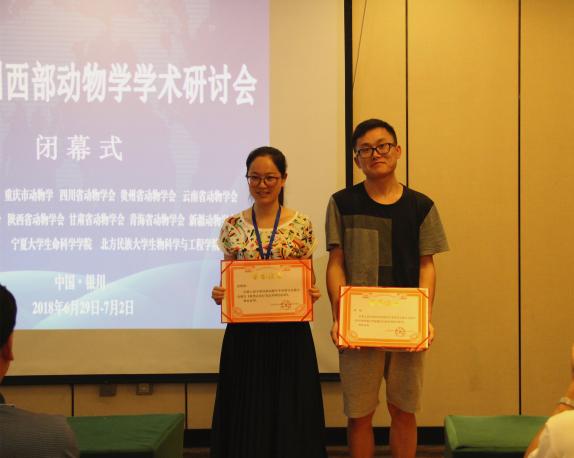 大会为会议评选出的优秀博士生、硕士生报告人颁发了获奖证书。宁夏生物学会秘书长张大治教授对大会进行了简要总结。贵州师范老员工命科学公司经理翁庆北教授作为下一届会议的承办方进行了表态发言,2019年相约贵州。